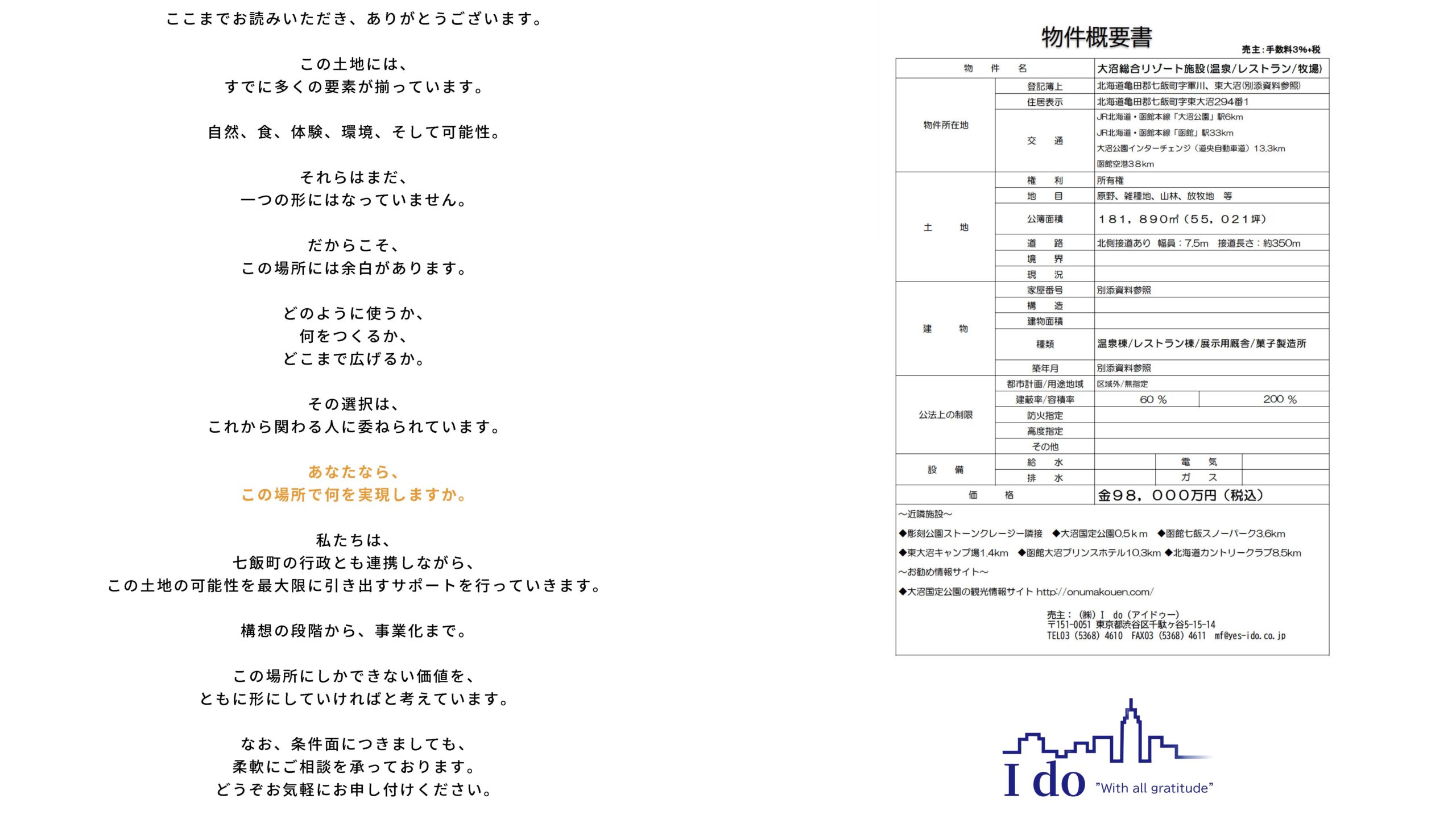 物件名:大沼綜合リゾート施設(温泉・レストラン・牧場)